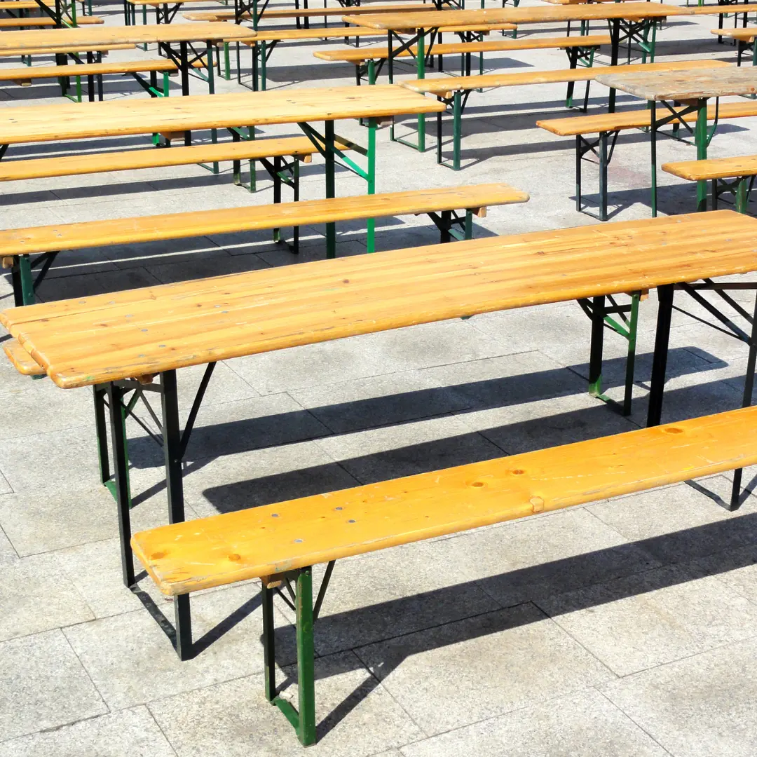 - Atmosfera unica: I tavoli e le panche in legno donano un’atmosfera calda e accogliente a qualsiasi evento, che si tratti di una festa in giardino, un matrimonio all’aperto o un festival.
