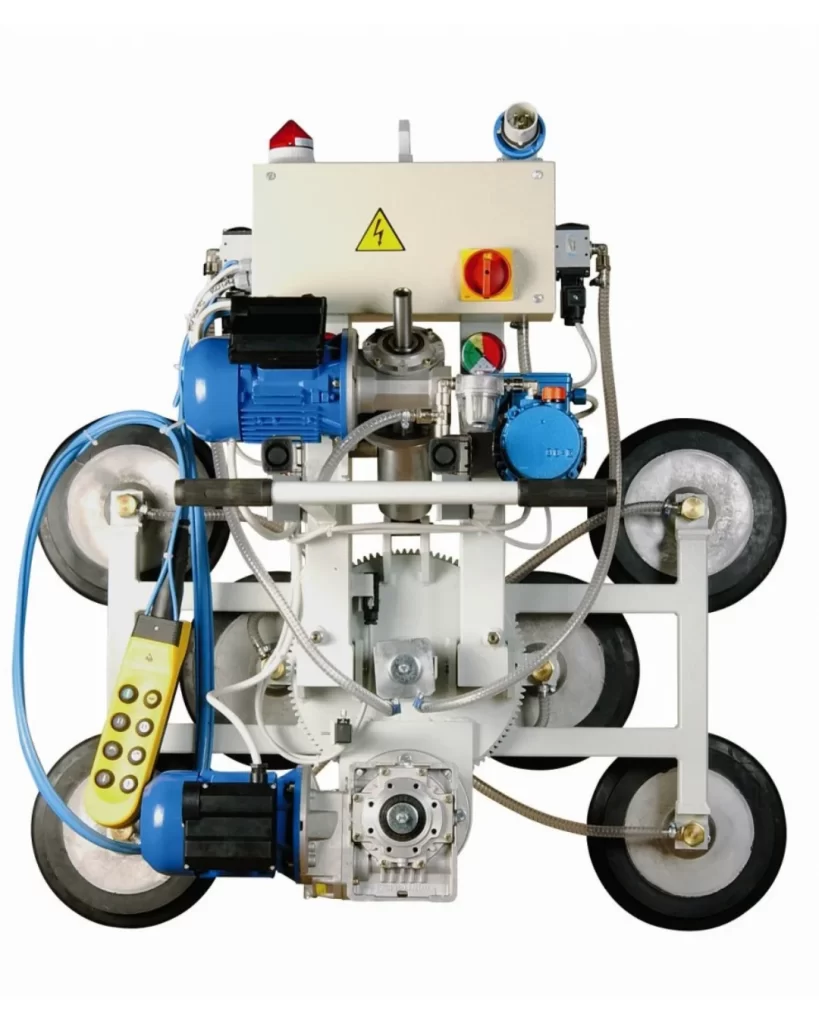 Il robot ORION L6 è una gru semovente elettrica con braccio telescopico capace di sollevare fino a 600 kg È ideale per la movimentazione di volumi vetrati e può montare accessori come un manipolatore per vetro, ma non è adatta per merci pericolose o il sollevamento di persone.